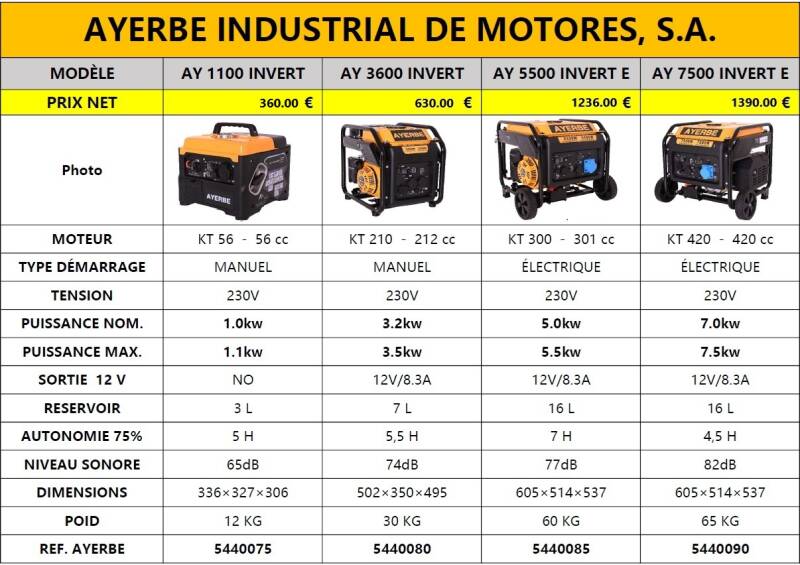 Découvrez le groupe électrogène AYERBE 3800 KT INVERT : une solution d'alimentation électrique fiable et stable, idéale pour répondre aux besoins des équipements sensibles tels que les ordinateurs, les téléviseurs et les appareils électroniques.