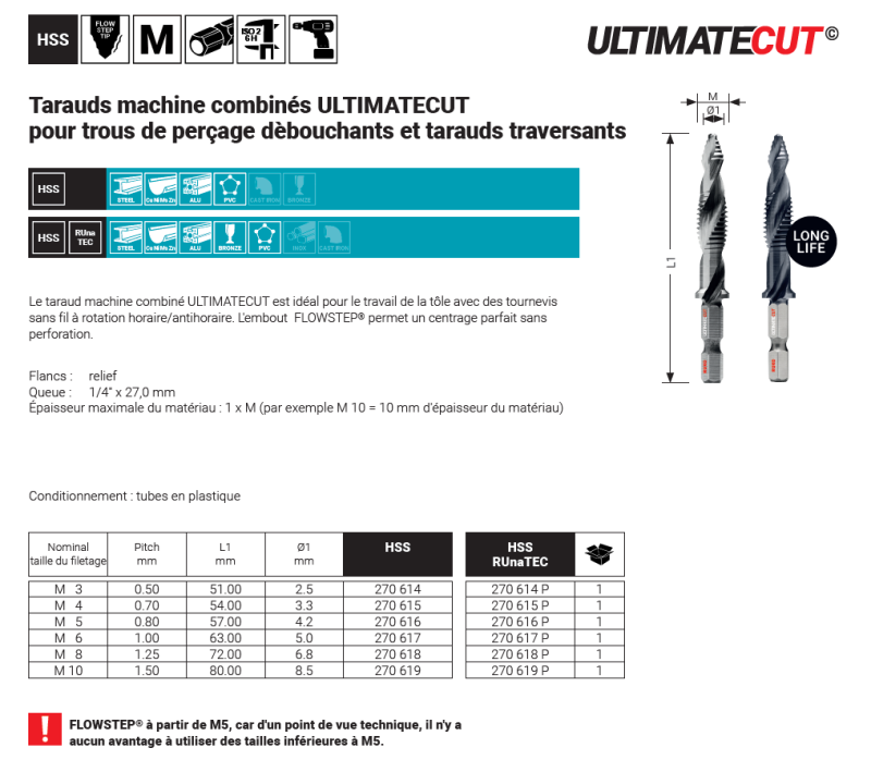 Jeu de 5 forets hélicoïdaux ULTIMATECUT DIN 338 Type FLOWSTEP® HSS-Co 5 - 5 pièces Prix : 46.50 € Pièces
